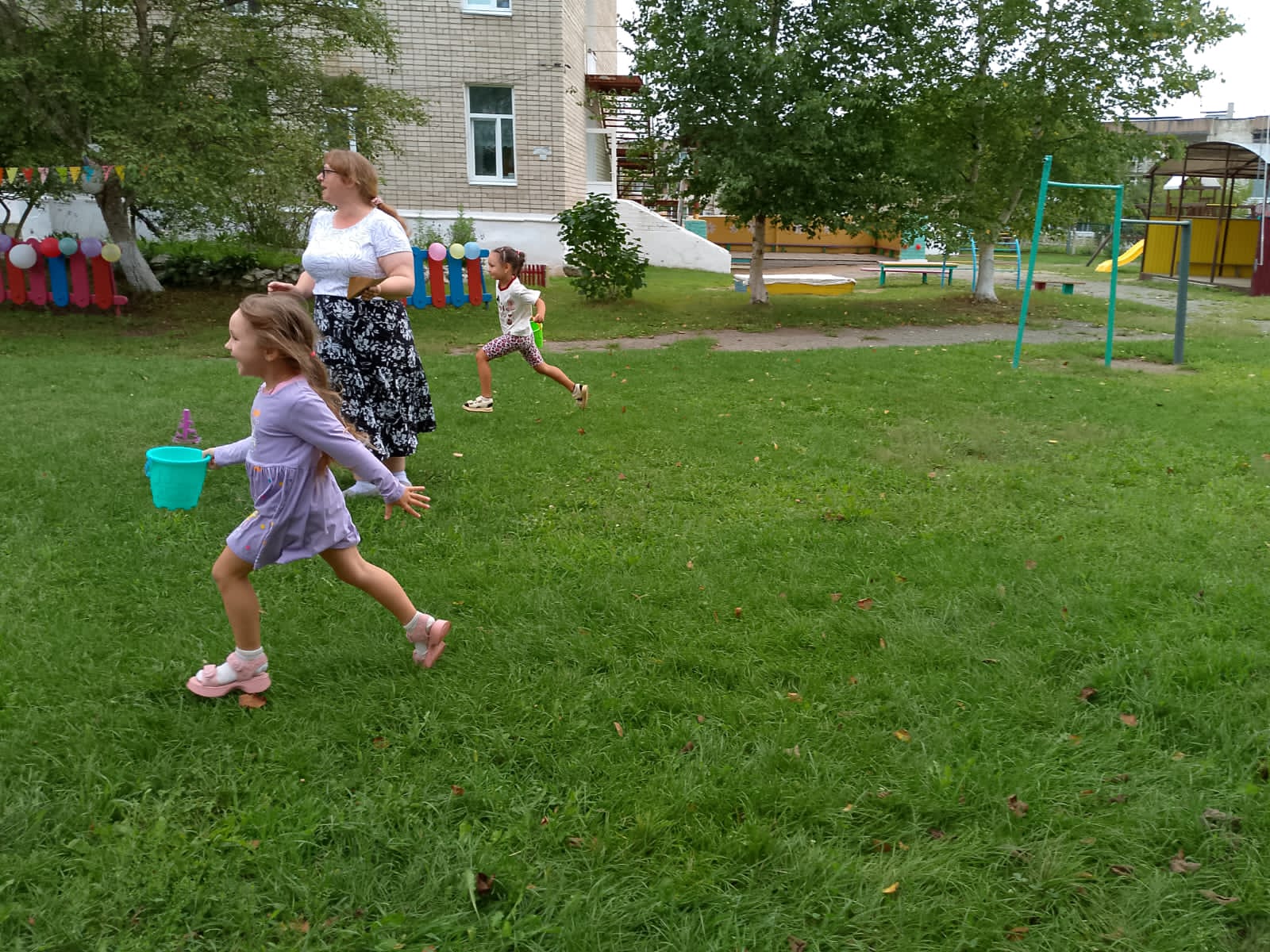 В последний день лета для ребят был проведен веселый интересный праздник «До свидания, Лето!» Отмечали его на улице. Вся территория вокруг детского сада превратилась в увлекательный марафон. На каждой станции детей ждали не только интересные задания, но и цветные воздушные шары, записки внутри которых указывали цвет той станции, к следовало двигаться дальше. Название станций говорило само за себя: «Дорисуй лучик», «Морская», «Самый меткий», «Игровая», «Кто самый умный?». Дети с радостью выполняли задания, и развлекались от души.